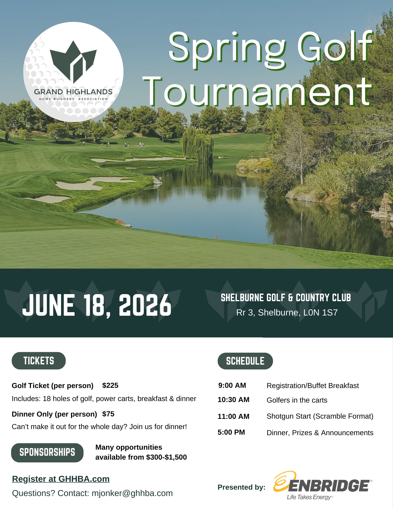 Held at the beautiful Shelburne Golf & Country Club, this tournament brings members together for a day of great golf, networking, and friendly competition in an early-summer setting. The event features strong participation from builders and industry partners, making it a highlight of the GHHBA social calendar.